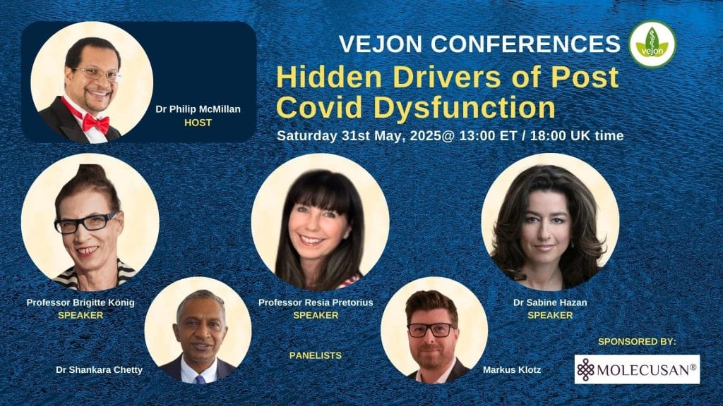 לראשונה, כמה מהמדענים, הרופאים והחוקרים המובילים בעולם נאספו כדי לחקור את המניעים הנסתרים שמאחורי פוסט קורונה ותסמונות לאחר חיסון. ד"ר פיליפ מקמילן הנחה את האירוע הזה. הוא, כמונו, מאמין שאנו עומדים בפני משבר רפואי מורכב ומתפתח הדורש דיאלוג פתוח, מדע קפדני, וחשוב מכל, שיתוף פעולה. מה שאתם עומדים לקרוא ולראות הוא סינתזה עוצמתית של דיוני פאנל וחילופי דברים בשולחן עגול שמתעמקים במנגנונים של התמדה של חלבונים בעלי עלייה חדה, תפקוד לקוי של המיטוכונדריה, הפרעות בקרישת הדם וקריסה של המיקרוביום. קראו עוד בבלוג שלנו.